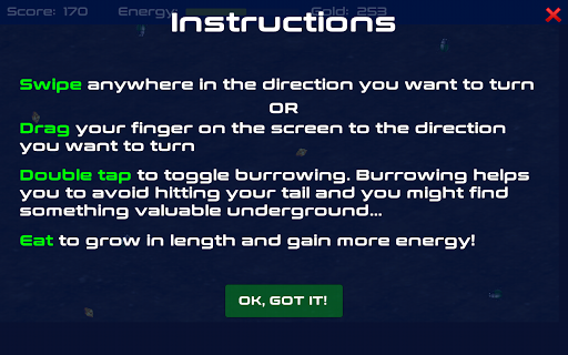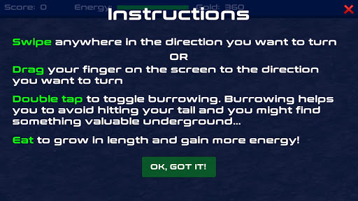 🖐️ Use swipe gestures or "drag" your finger to the desired direction to turn your worm.