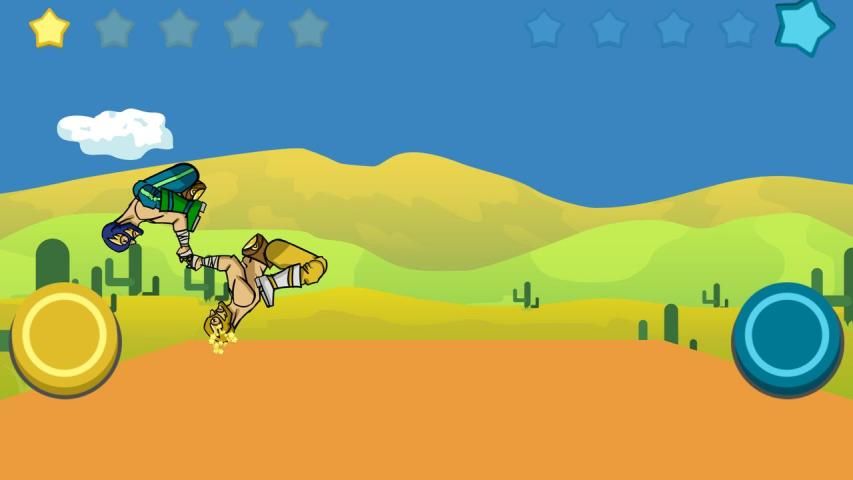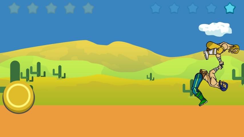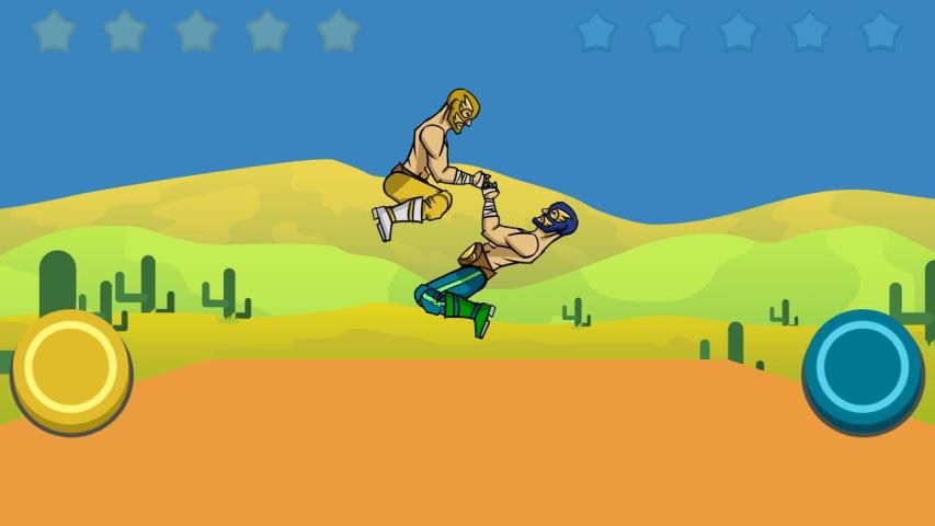 Press the buttons to move your legs. The funny point of this game is that two wrestlers can rollover in the air trying to use each chance to win. Jump and defeat your opponent, be the true wrestling champion. Play against computer or compete with your friend in player vs player mode.