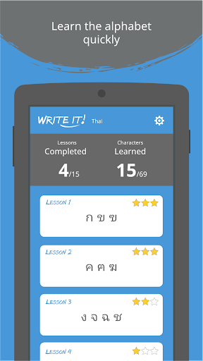 Stop referencing books, watching videos, and using lackluster tracing apps that never test you, download Write It! Thai now!