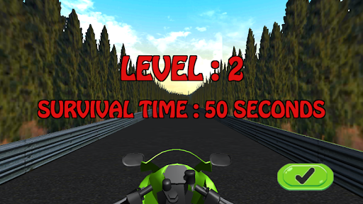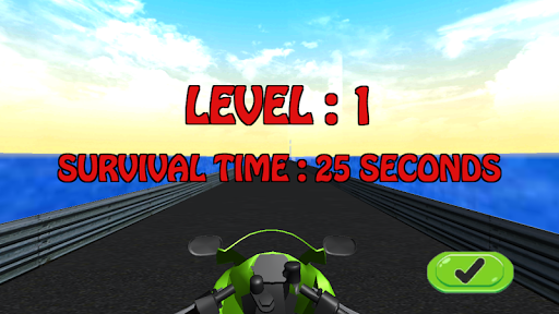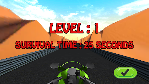 - Touch and right side of the screen to move the motor cycle / bike to turn.