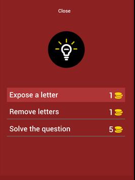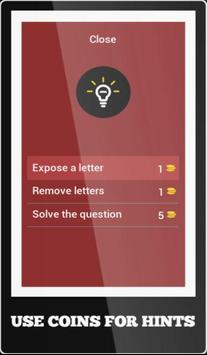 * Receive coins per correct answer to use for hints / reveal letter