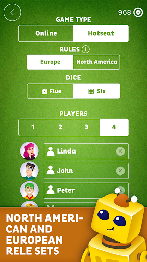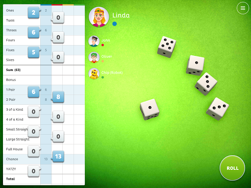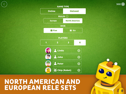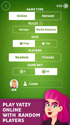 Play Yatzy™ online with random players or with family and friends. Supports both North American and European rule sets, as well as 5 or 6 dice. Yatzy™ allows up to 4 players online and offline, and includes bots to play against. Join the fun online by playing random players and show you are the best at Yatzy™! Interact with other players in-game with fun emojis and phrases to add excitement to the game!