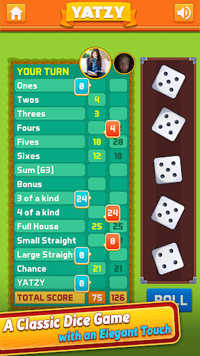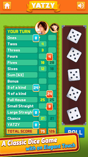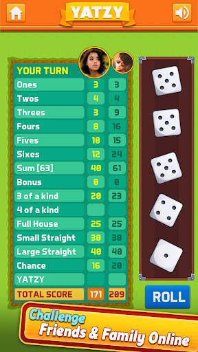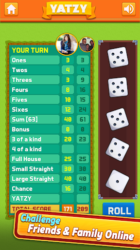 Throw and sort the 5 dice in this classic Yatzy Free with Friends game.