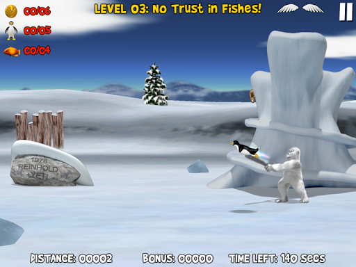 - To control the Pingu once in fligt, tilt your device or use the Left/Right arrow keys