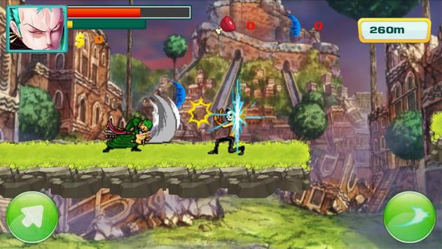 ZORO Swordsman Pirate Hunter is an action game. It's time to crush enemies and help roronoa to fight and become the king of sword world, follow the adventures of roronoa, a big member of straw hat pirate team who try to fight in a dangerous jungle game. You must help him advance trough the jungle, forest, desert castle, cave and fight using his pirate knife and zoro tools. With more than 50 captivating levels, ZORO Swordsman Pirate Hunter is an amazing experience that you gonna love it.