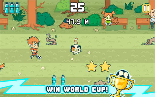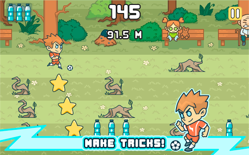 You always dreamed to become the best SOCCER PLAYER on earth. RUN with the ball as long as you can. AVOID opponents and other objects to get the highest score. Make as many TRICKS as you can.