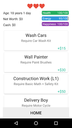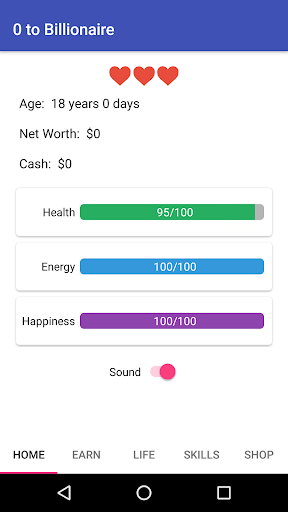 Zero to Billionaire is a simple click based role playing game. You play an 18 year old character with $0 in hand and homeless. You just have only one dream, Become a