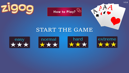 EXTREME: It is played by a total of 24 playing cards which are of 4 kinds (Hearts, Diamonds, Spades, and Clubs) each counting from 1 to 6. To begin with, 6 of the card s are turned up side to side at random. Then, any of the next cards turned up is placed discretionally under any of the 6 columns of the cards. Following the third turn, finally the cards of the fourth turn are turned up and placed. The goal of the game is to achieve sum of 14 in each column of the cards.
