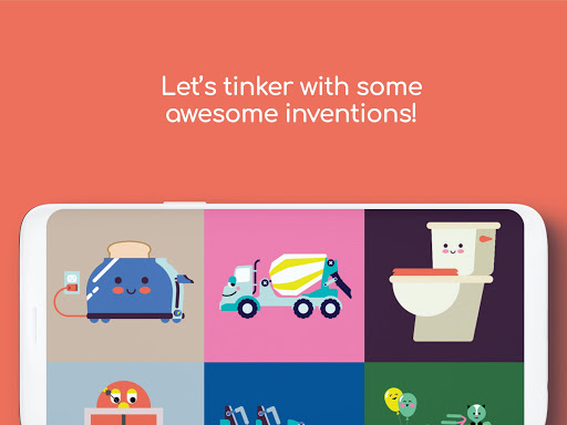 Kids can choose their fave inventions from a growing in-app library, updated monthly., such as concrete mixers, escalators or rollercoasters,