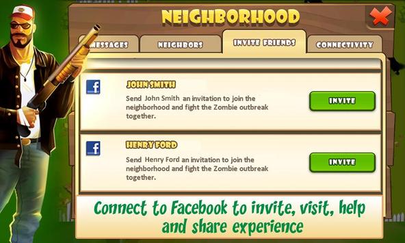 •Connect to Facebook and invite friends to add them as neighbors.