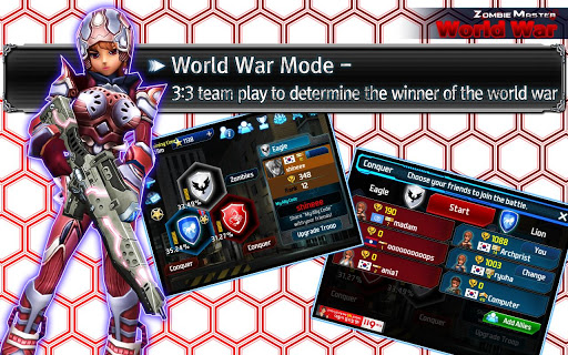 A war of 7 billion people to protect the honor of their countries broke out! Join the world war of 7 billion people where people fight under the banner of their national flag every 7 days! Cleanse the earth that has been contaminated with zombie viruses and stop the endless attack from other teams! The champion of the great war of 7 billion people! It could be you. It’ new! It’s big! No comparison to other games can be allowed! Gone are the days of PC shooting game! The age of mobile shooting game has arrived! You are the last female warrior of the human kind! You are given the critical mission of creating your own team of warriors to save the earth that has been infected with zombie viruses and build a new world. Reconstruct the city that has been destroyed! Raise your own army! Form an alliance! Win the great war of 7 billion people!If you want to save the world from zombies, choose the Scenario mode. If you want to become a victor in the war of 7 billion people, choose the World mode. [Game Characteristics] War of 7 billion people where each player joins the war under her country’s flag. A war takes places every 7 days and the winning team receives award money Award money is given to the champion every week, one in 7 billion.  Country and individual ranking where pride of a nation is at stake No waiting! Automatic matching system allows players to enjoy party-play anytime and anywhere.  Hit it back immediately when you get hit! Revenge system! A bullet of vengeance to those who dare to attack me!  Creating your own troop using the troop development system of my own.  Arm yourself with several dozens of weapons and defensive tools  Done with simple bullets! A variety of missions is waiting for you to take on.  Do you want to have diverse war experiences? Ride a helicopter and humbie and defeat the zombies! [Note] 1. Levels, items and game data in the World and Scenario modes are run independently and separately. (The stars you earned in the World mode will be exchanged to cash or gold in the Scenario mode. 2. The World mode requires network connection.3. Share your alliance code via SNS if you want to get more alliances.