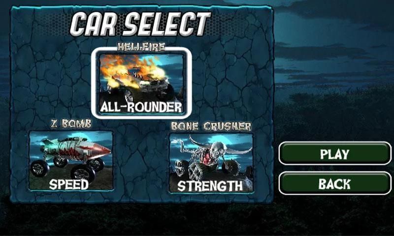 Zombies... every creature turned into zombie. Run away from the territory occupied by walking dead. Choose from three different trucks: Hellfire, Z Bomb and Bone Crusher. Then overcome treacherous obstacles and run down any zombies that get in your way in ten challenging levels. Can you survive this highway to hell?