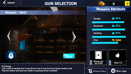 Gun store with new and latest weapons .weapons models has also being enhanced to look better. There are a lot of weapons in gun store user can unlock them using coins. If
