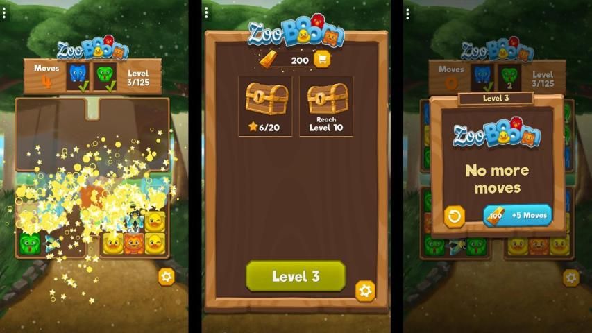 The further you progress, the more tricky the challenges will get: free animals from cages which are too tiny, destroy boxes and remove poisonous mushrooms - there's always stuff to do in your zoo! In case you are stuck and can't complete the needed tasks, simply buy additional boosters in the shop and use them in the level. Can you earn all stars in Zoo Boom?