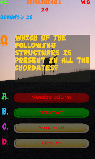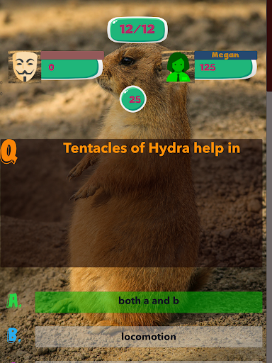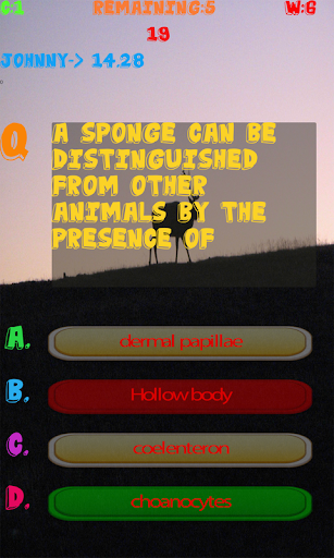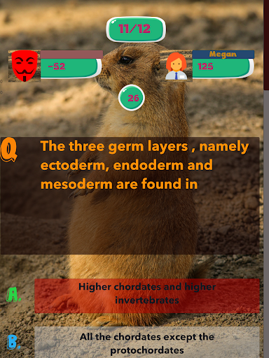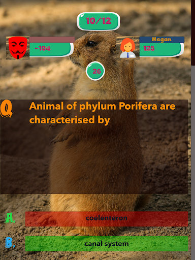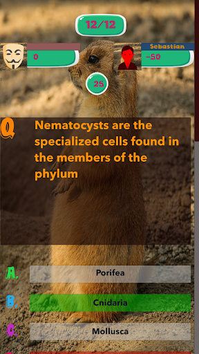 This Zoology game helps user to sharpening their knowledge and senses, help them to prepare for exams or tests which are based on all branches of Zoology and helps them to increase their knowledge. This app targets people of all ages, even children could enjoy tests created by this app and could enhance their Zoology Knowledge. This app can be used for the preparation of School, Collage and Universities quizzes and also for entry tests. This app contains cool features like coloring the buttons green if the answer is correct otherwise coloring the button red because the answer is wrong. It provides multi-player functionality which enables you to play against the players around the world. It contains good graphics and less Ads. This app is extremely efficient, it is developed in such a way so that it could run smoothly in any android device..