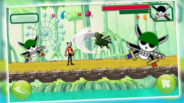 run with your favorite zoro one piece pirate fight battle hero and avoid the traps , kill enemies and earn points .