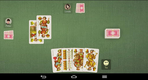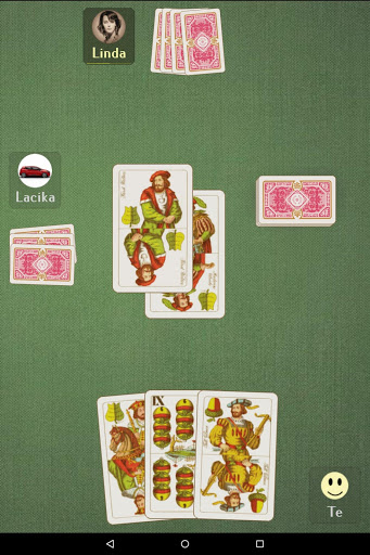 "Zsirozas" is a trick-and draw game played with a 32-card German-suited deck. The suits are irrelevant in this game and there is no ranking order. A trick is won by the last player to play a card of the same rank as the card led. The sevens (VII) function as jokers, they assume the rank of the first card in the trick.