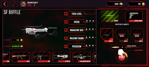 In this shooting game with zombies, we have prepared a great collection of weapons for you. You will find a pistol, shotgun or a sniper, assault rifle or submachine gun to choose from. Have in mind that in this zombie shooting game weapons are not free; you must earn in game money or gold to buy them.