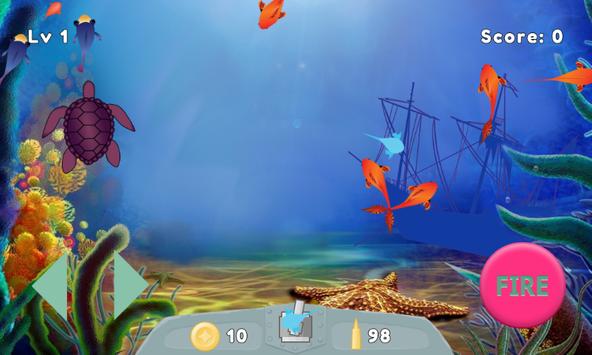 Shoot at fishes to collect coins and score. More coins more ammo. Score to up level and unlock the new weapon (with more damage). And more updates soon...
