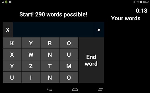 You will be competing against a Computer in this time bound game. If you don't come up with a new word for 30 seconds the game is stopped (timeout).