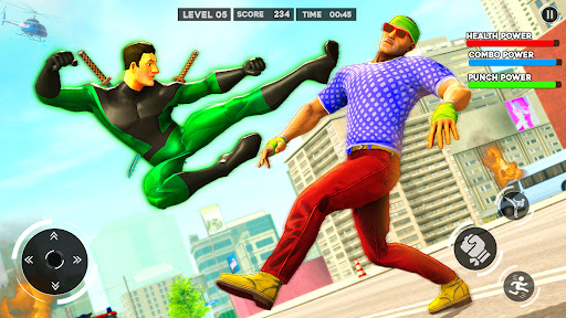 Time calls for your duty to wipe out all criminal mafias. Enjoy the real jumping and flying rope frog fighter hero action in the vice city against street thugs. Destroy enemies den in challenging missions of real ninja superhero.