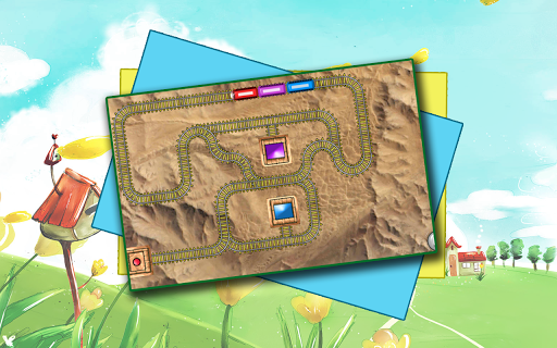 2. The Bungee Train has multiple bogies with different colors and the track has different colored home boxes.