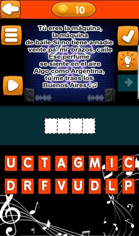 El juego recopila muchas de las letras de las canciones populares mas pegadizas y movidas que te haran recordar y tararear esas canciones inolvidables cada que las leas.