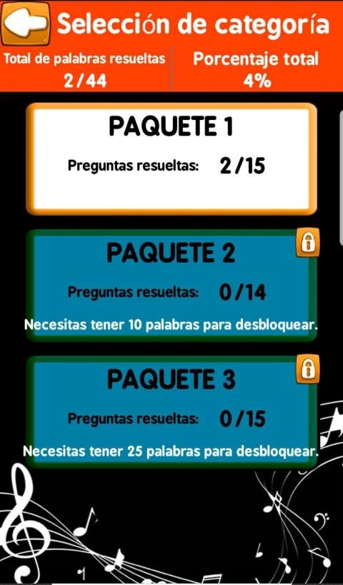 To play just open the game and choose the first package, in which you will have to guess the 20 songs to be able to continue with the rest of the levels. To be able to overcome the level you have to press the letters that appear under each image until correctly forming the name of the respective reggaeton theme.