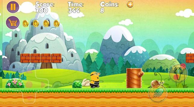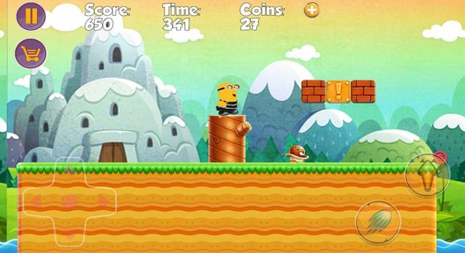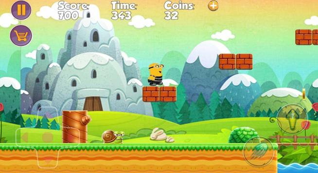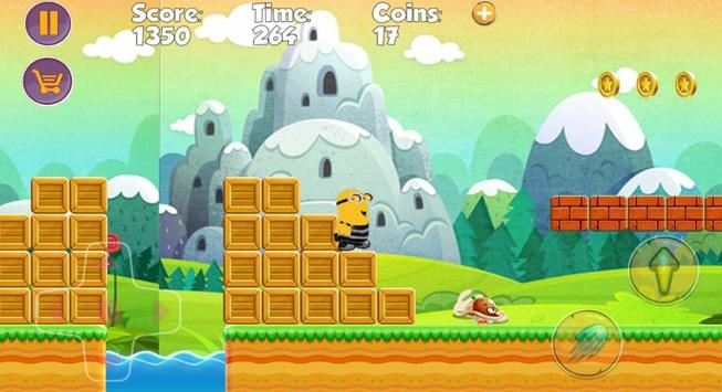 Control minion to run, jump and bounce on monsters on his adventure to get to the castle or temple. To Start your run adventure in minion , jump and run across five worlds in your way to the temple as you smash through those tricky monsters. Minion with unexpected obstacles, minion has to put all what he got into the adventure to get to the FINAL destination. Then minion will finally reach the castle or temple. Are you ready for the adventure?