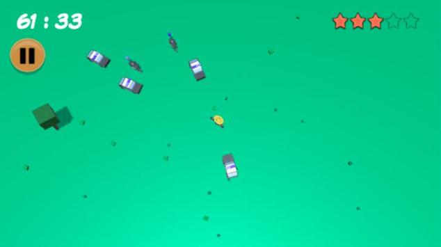 Cars, motobikes and helicopters chase you through the countryside!