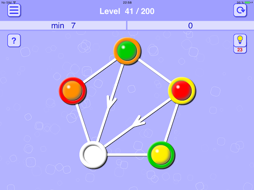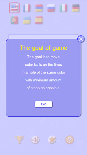 The game begins with light exercises. Gradually, the exercises will become a difficult-the number of balls and lines increases. The lines connecting the holes can be with arrows, which indicate the movement of the balls only in the direction indicated by the arrow.