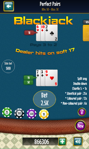 ✔ Blackjack with side bets (Perfect Pairs Blackjack, Royal Match Blackjack, etc)