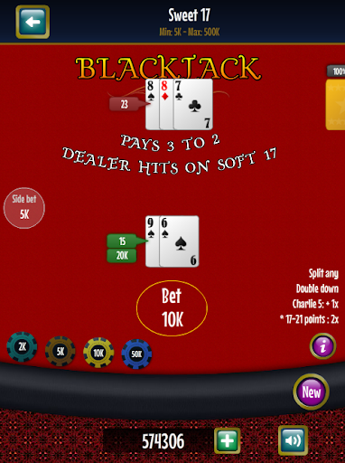 DON'T EVEN THINK THIS GAME IS RANDOM! CAN'T TELL YOU HOW MANY TIMES I WAS DEALT 20 ONLY TO BEAT BY A 5, 6, EVEN SEVERAL 7 CARD 21. PLUS THE DEALER ALMOST ALWAS WINS BY 1 CARD. BUT FIGURED IT OUT JUST LET THE DEALER BUST.