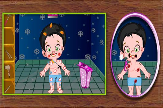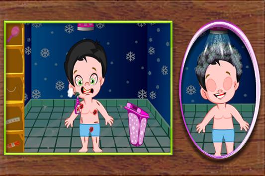 Oh no, this little kid is totally messed. Clean him by removing all dirt's and give bath him. Also make him cute by selecting the most beautiful dress.