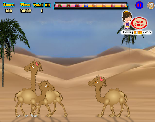 Show your talent and skills and guide the camel to kiss other one's on the way. Use mouse click to kiss and adjustment of the height of the camel. Keep close eye on the top bar, don't miss anyone to kiss and make sure you have done your job perfectly to become a winner. Good luck and have fun playing this kissing game!