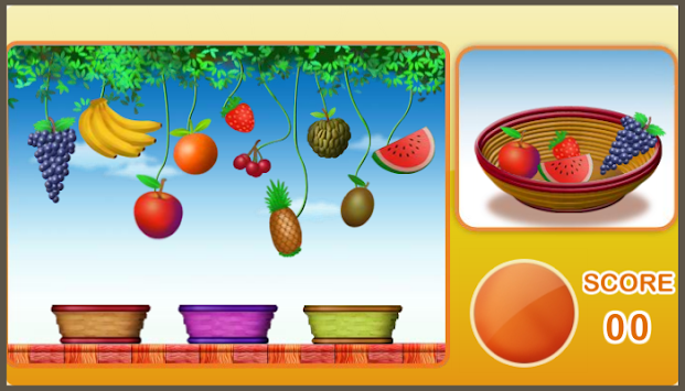 Memorize the different fruits and the basket color displayed in the right windows before they vanish.