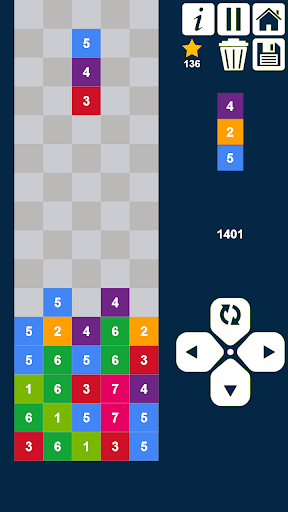 - Swipe gestures: Swipe UP to re-arrange the positions of the numbers inside the fallen column. Swipe DOWN to direct the column to the bottom. Swipe RIGHT to direct the column to the right. Swipe LEFT to direct the column to the left.
