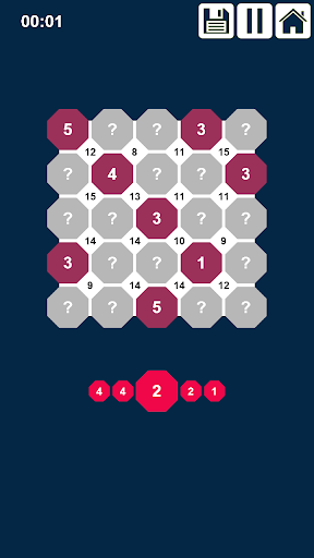 The game has 7 different board sizes: 3X3, 4X4, 5X5, 6X6, 7X7, 8X8 and 9X9. Each size has many different puzzles.