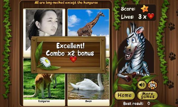 Tease your brain and test your knowledge with this excellent free puzzle intelligent and fun game! In this original quiz, you have to solve different kinds of puzzles. Some are easy, but don't be fooled, some are really hard! The cute zebra suggests you to find the odd one in the picture sequence. Your task is to guess which one of four pictures does not belong & why it doesn't belong.