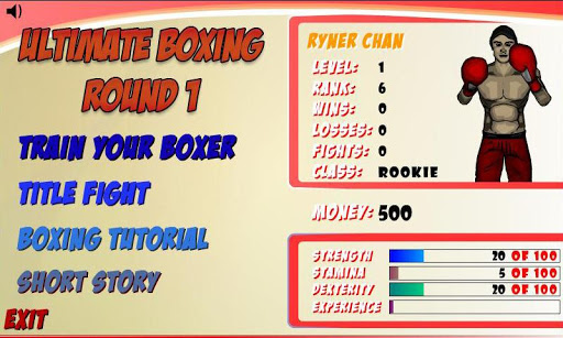 Ultimate Boxing Round One is a comprehensive 3D first person boxing simulator, giving you full reality sensation. A tactical boxing game for your smart phone and tablet that features fast and fun game play, with a live magnetic atmosphere.
