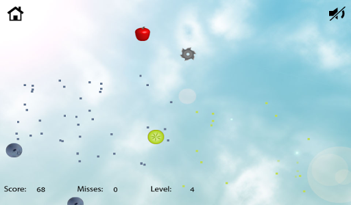 Glide your finger across the screen to move the saw blade and slice as much fruit as you can. If 5 fruit leave the playing field the game is over. As you slice more fruit, the difficulty increases, causing the fruit to move faster, and enter the screen more often.
