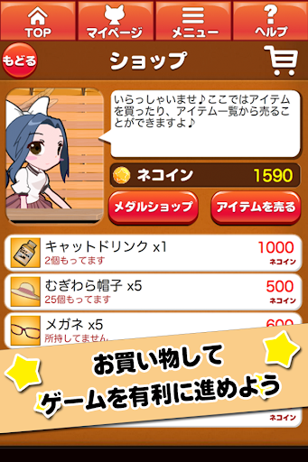 I like this cute cat game a lot. I just have no idea what I'm supposed to do or what's going on. I mean, the title is in English??? So wouldn't the game be too? Some of the game is English a little bit. Still like <3