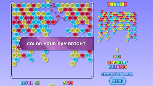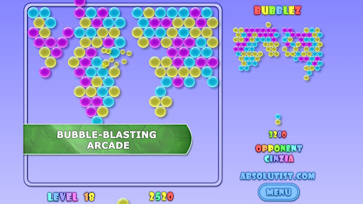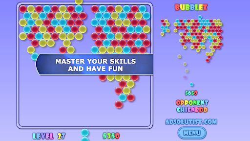 This multiplayer bubble shooter is a perfect time-killer and a challenging game for all Match 3 or Marble Popper fans. Make the groups of 3 or more bubbles of the same color to clear the play field. Compete online in multiplayer mode and gain bonus score every time you win! With 45 impossible levels Bubblez: Bubble Defense Free provides almost unlimited play time!