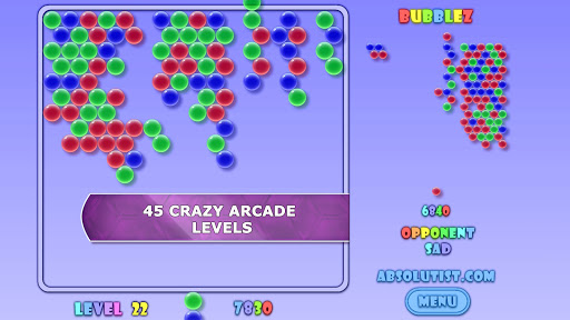 Make your way through 45 crazy arcade levels and get additional score every time you win! If you like bubble games, than there is no need to explain the rules of this fun free arcade. If you don't, than Bubblez: Bubble Defense Free will make you change your mind.