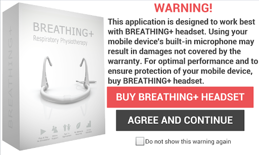 WARNING: This application is designed to work best with BREATHING headset. Using your mobile device's built-in microphone may result in damages not covered by your warranty. Additionally, BREATHING headset provides hands-free operation, firm position in front of your mouth and a much better signal-to-noise ratio resulting in more accurate breathing detection. For optimal performance and to ensure protection of your mobile device, buy BREATHING headset: http://www.breathinglabs.com/breathing-package/