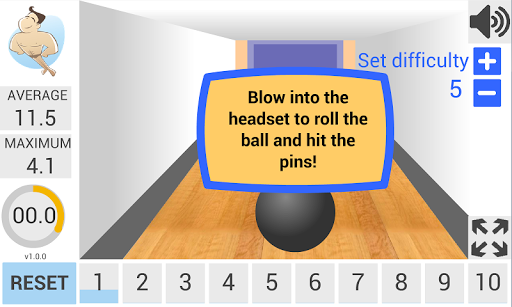 Blow into the headset to hit the pins.