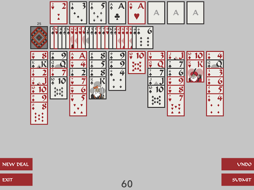 This game also features an Undo function, and the ability to flip the waste pile over at the end of a game to continue playing if you wish.