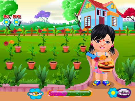 Raina moved to a new house much larger and more spacious. She finds all good in this house but to her surprise, the big garden isn't full of flowwers. So she wants to plant as many flowers to have a garden as beautiful and rich in flowers. Raina need to help to make it so you have to go in the garden and help clean it because it is quite dirty. You need to prepare some flower pots in which the seeds and then we'll put wet with water to stimulate growth. We need to help our friend to take a bath Raian out, so we washed her hair and then we rinse little water to remove dirt and soap. Raina got to go home to help in different things like play with the teddy bear or eating a fruit salad. Still have to get out in the garden and we see that all the flowers planted by Raina increased, so we have to pick a few to prepare a bouquet to a loved one. Please try other games for girls in this series for all test your skills in caring for small children.