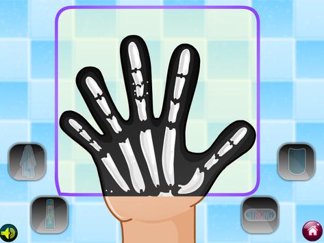 Today you are a doctor for a day, and that being a good doctor and get need to know what to do and how to use the tools that we have in hand equipment to cure the patient. Today the emergency room at the hospital, the patient presented complaining of severe pain in the hand. This patient fell and seriously injured, and you must help him to avoid suffering quickly. The fall injured his hand when he fell hand in bottles, screws, nails. You have to hand clean water disinfectant to remove patient hand towel to clean blood nails, apply antiseptic cream, dab the wound with disinfectant and surgical thread to sew the wound that is open. Also because of the fall patient hand was swollen badly and can not remove the ring on their finger, and you have to apply the cream in the ring and to help the patient to remove his ring. You have to hand clean of bacteria, microbes, viruses and germs with disinfectant. After you have ensured that the hand is clean and disinfected, will be going to the patient makes an X-ray Scan. We notice that our patient has fractured a finger and apply a durable patch that will speed healing of the finger. Success in this doctor job.