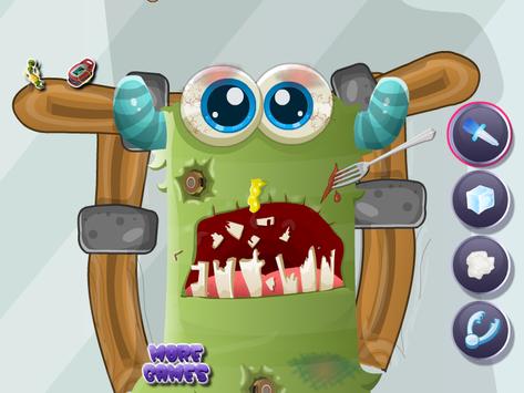 In front of your hospital door appeared in front of a large monster who asked for help because he was attacked by a group of piranha fish and is badly injured. You have to sit in the operating room and to manage blood he lost much by contact with the fish, we must manage oxygen to breath better, and will measure the temperature to normal. Caregivers must face the hurt that is large enough, we must remove foreign objects from the front and to repair teeth for each tooth and broken. We need to remove all foreign objects from the body to not get sick and harder to clean the area, and have to sew them all cut marks on the body. Then you must make them an x-ray to see if you broke a bone, and we see that the right hand bone is fractured. We need to administer a tablet to calm down and have to make them an injection that will make good sea monster. We invite you to choose and other games for girls in this series to test your skills and other issues related to the care of small children.
